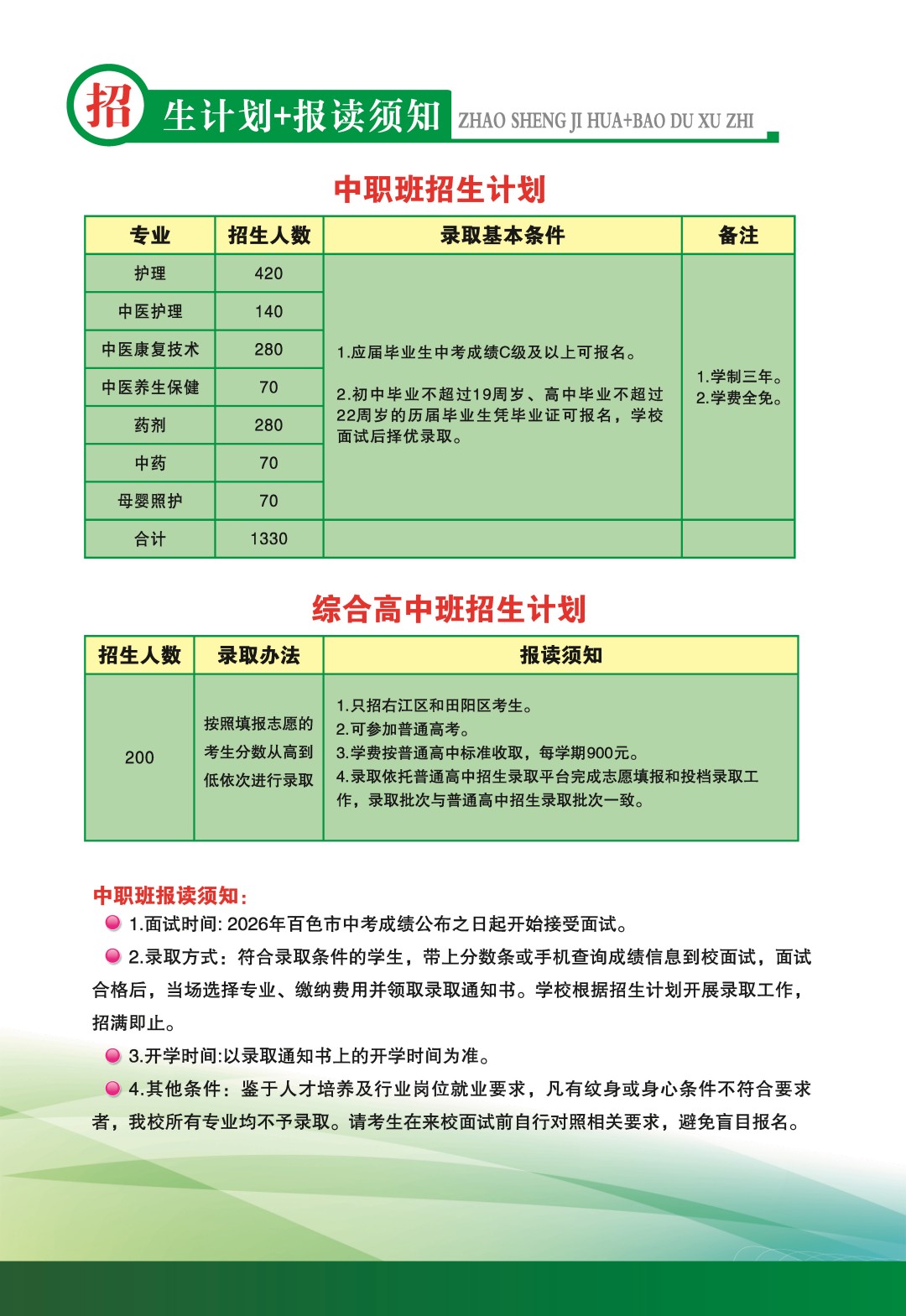 百色市民族卫生学校2026年招生简章